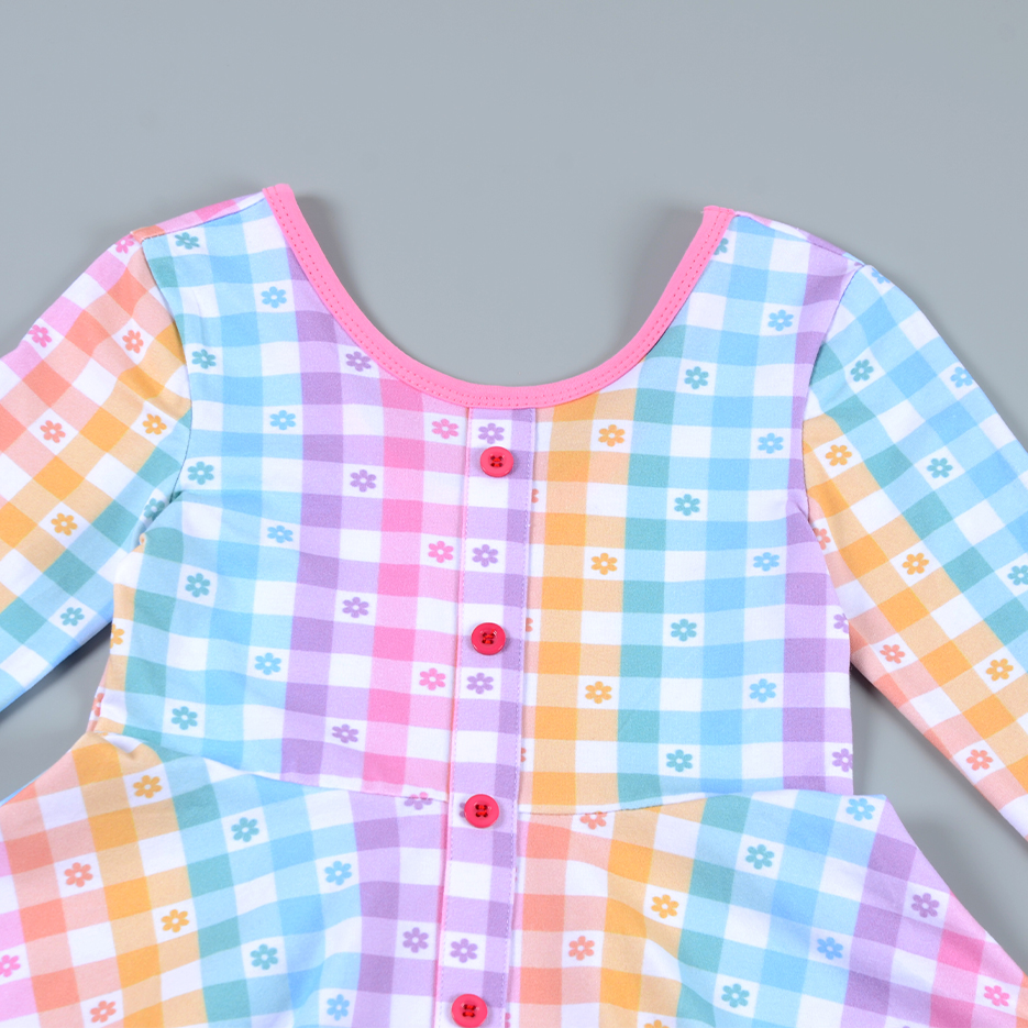 Introduce a burst of color to your boutique’s collection with our Pastel Rainbow Gingham Daisy Dress.